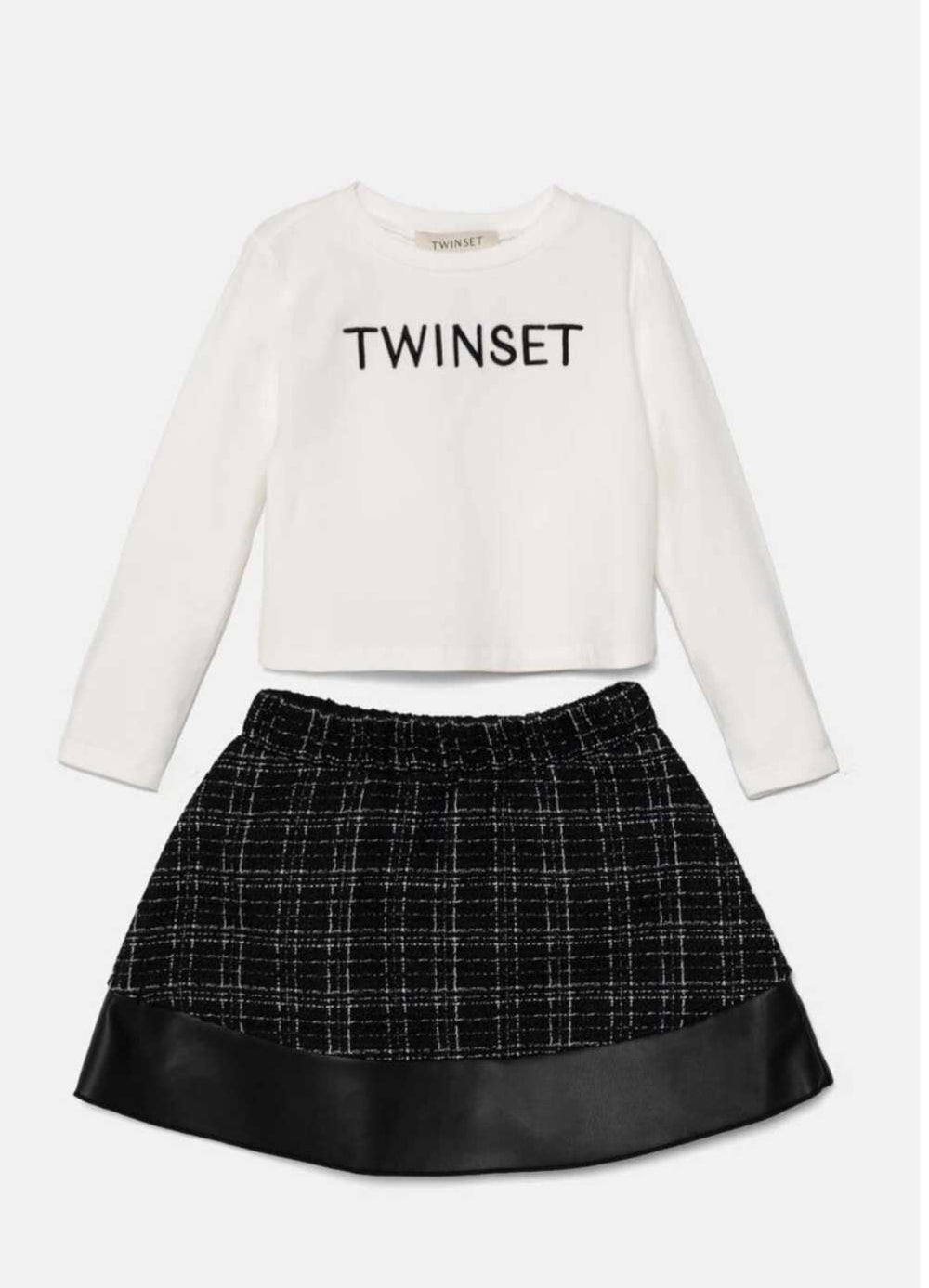 Completo gonna e t-shirt con scritta logo centrale.TWINSET