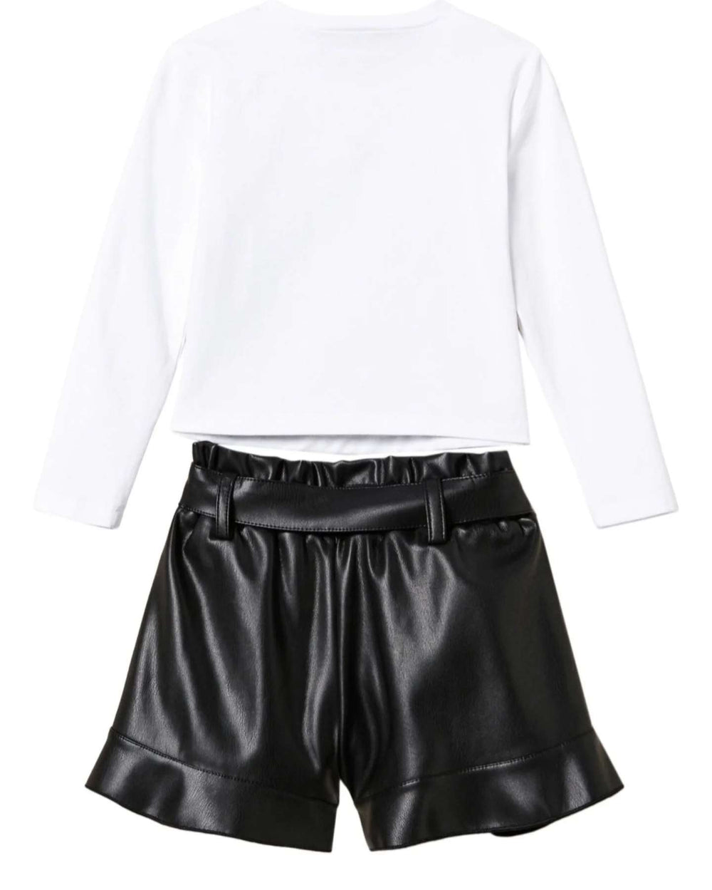 Completo pantaloncino in ecopelle e t-shirt con orsetto.TWINSET