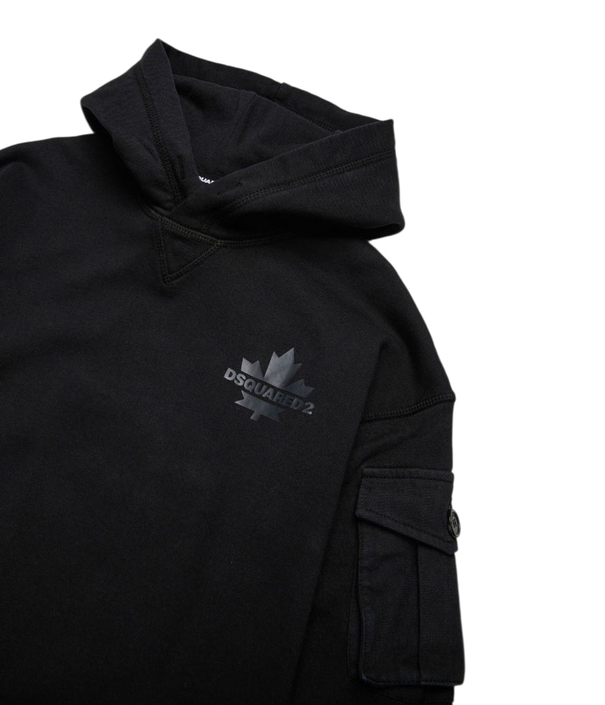 Felpa over-size con cappuccio , con logo gommato tono su tono e tasca sulla manica.Dsquared2