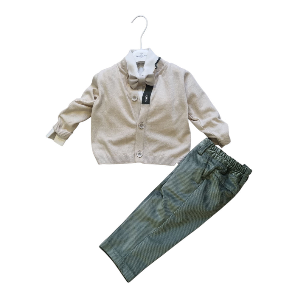 Coordinato 4 pezzi con camicia body, pantalone, papillon e cardigan.Gugu Gaga.