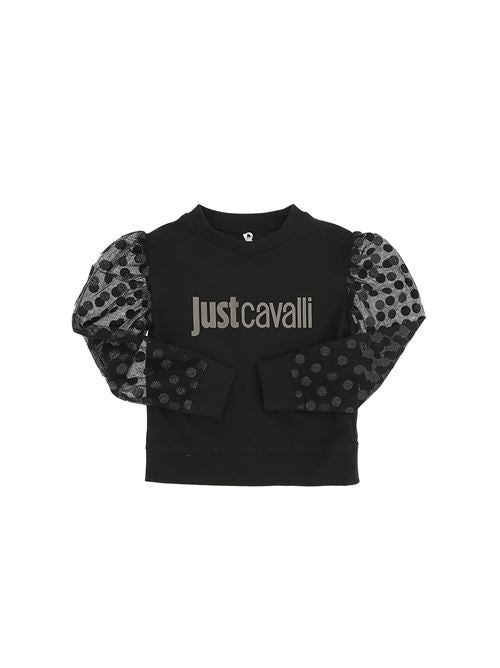Maglia con logo centrale stampato e maniche in tulle con pois glitterato. Just Cavalli