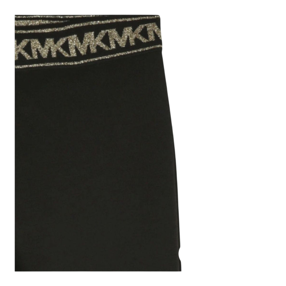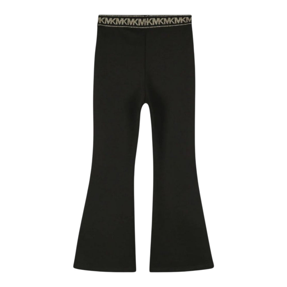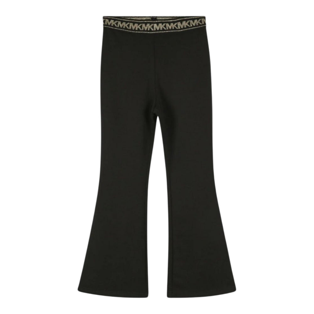 Leggings a zampa d'elefante in misto poliestere nero per bambina con elastico in vita con logo dorato.MICHAEL...
